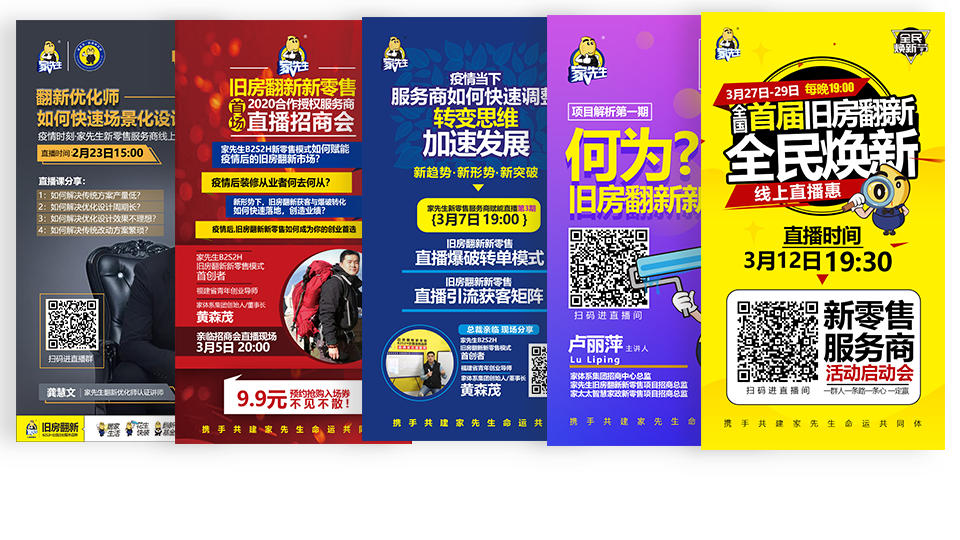 视频直播营销获客也是推广矩阵中的重要一环,家先生构建多元化旧房翻新各场景直播流量IP,场景化、多样化、多频次开展赋能直播、爆破直播,提升客单值,实现线上获客的新突破。合作即立享2场全国联动主题营销活动,快速精准获客,抢占当地蓝海市场。