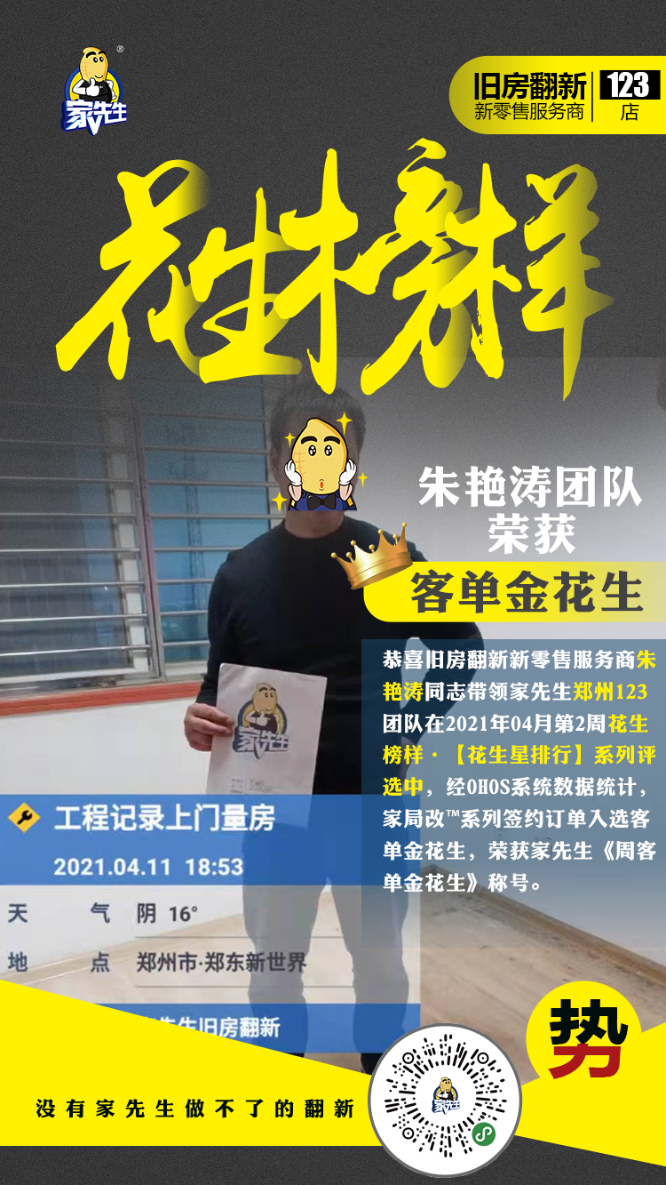 在家先生榜样辈出的时代,各种各样的榜样,在不知不觉中成为我们心目中的坐标。无论是团队管理、专业服务还是匠心工艺,都熠熠生辉。2021年4月第2周“花生榜样”获选名单公布,让我们看看这一期优秀花生榜样的入选名单!