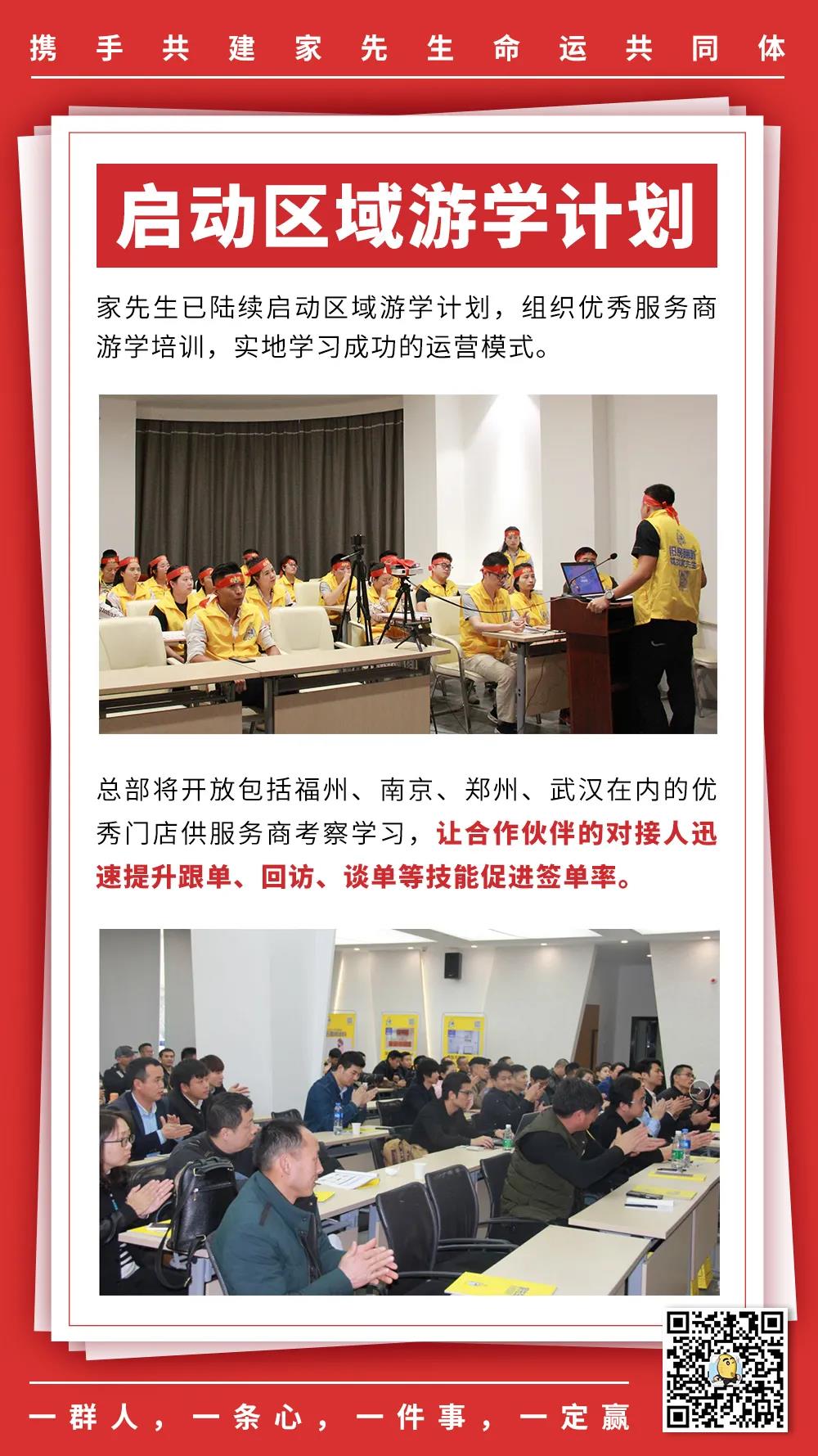 家先生希望通过游学培训计划提升全国加盟商团队的综合素质水平,以此作为崭新未来的起点,以更专业的团队姿态,实现总部与服务终端的互利共赢!
