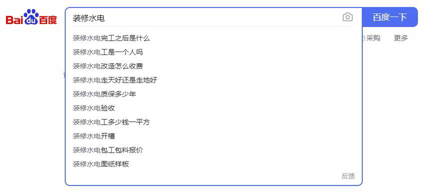 在搜索引擎中输入关键词,搜索框会根据用户搜索的大数据统计结果,自动匹配最常见的搜索问题。这些问题就很有可能是业主们正在面临的痛点,可以作为销售的参考。