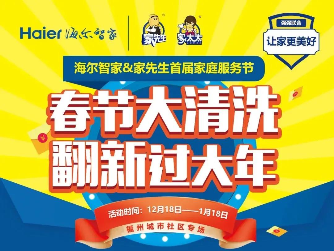 为期一个月的“2021年家先生&海尔智家春节大清洗·翻新过大年首届家庭服务节”正在福州晋安区大名城社区火热进行中···欢迎大家来活动现场咨询家装翻新、保姆家政、海尔量子小店智家等服务。
