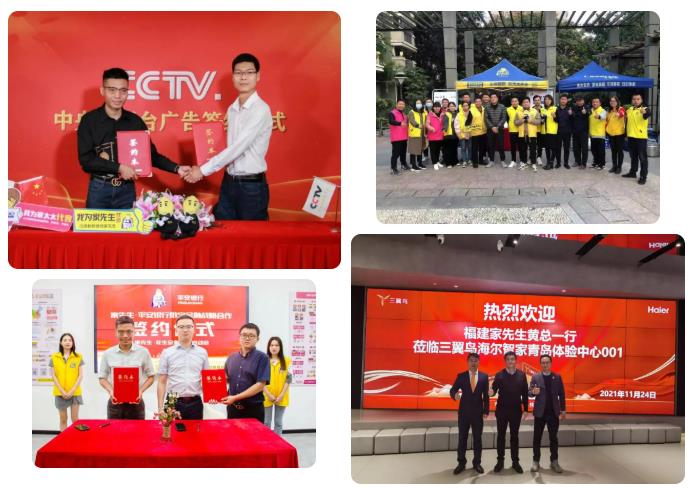 回顾家先生的2021,3月家先生总部启动区域游学计划;4月家先生正式签约央视;5月家先生与京东智能家居达成战略合作;9月家先生与平安银行数字金融达成战略合作;11月家先生与海创汇达成战略合作;12月家先生与海尔量子小店首届家庭服务节在福州首次圆满落地。