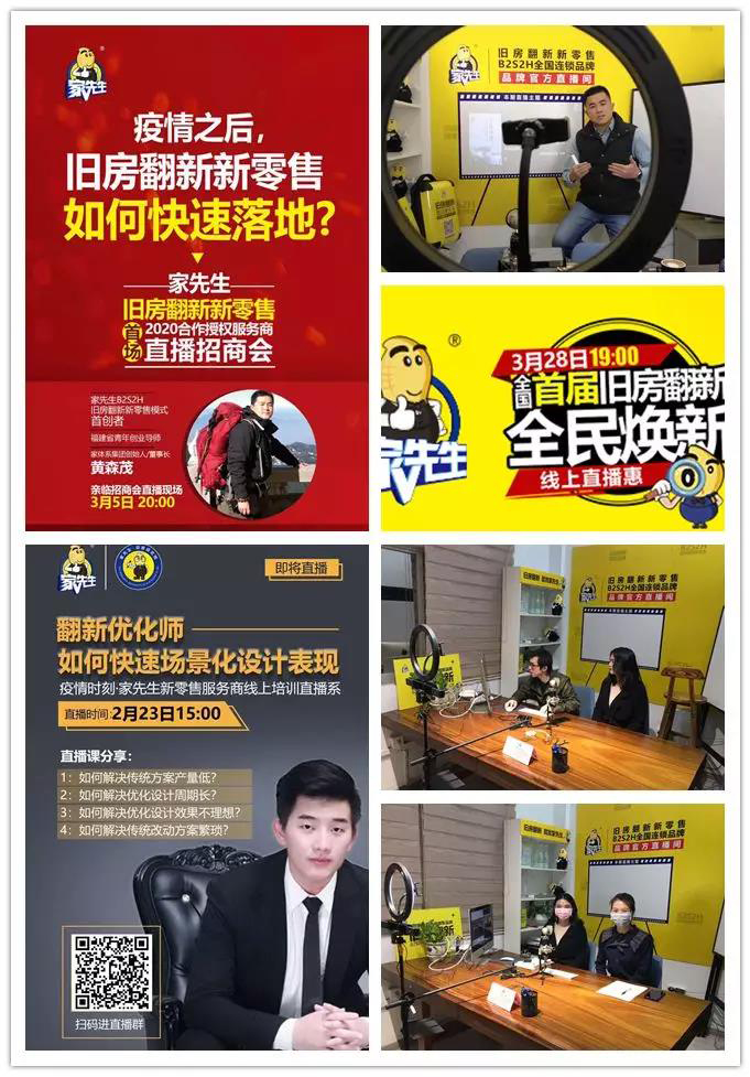 近2年受新冠疫情影响,家先生推出直播模式,解锁线上直播赋能新模式,助加盟商提升转单技巧,提高服务品质,并在直播中实现转单爆破,线上锁客,实现线上获客的新突破。