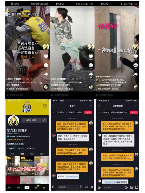 除了直播以外,家先生在短视频领域持续发力,布局以抖音、快手为主的营销矩阵,在短视频市场迅速发展,获得了广泛的关注,2019年家先生通过短视频营销成功签约业主超过千单。