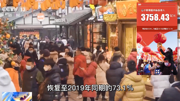 春节假期国内旅游收入3758.43亿元,同比增长30%,恢复至2019年同期的73.1%。